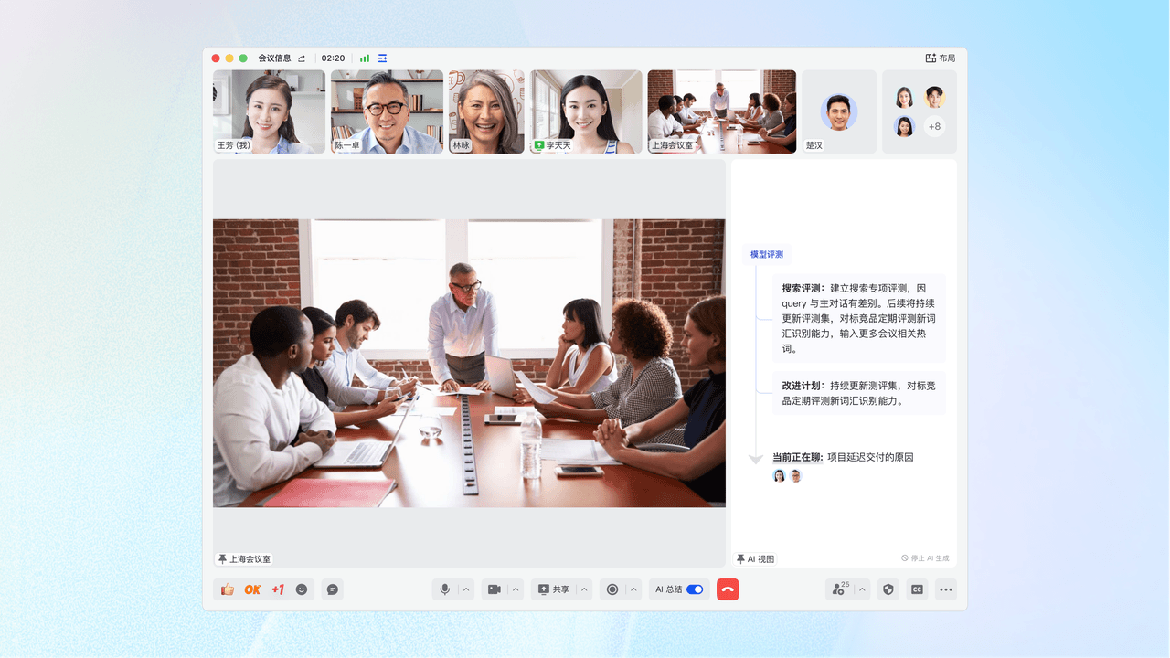 飞书智能会议纪要致力于为每场会议配备全程智能会议助理,让会议更高效、更有效。 飞书智能会议提供会中实时总结,会后全面回顾,精准的会议纪要、待办提炼,让会议结论更好的落地、会议内容充分沉淀、可进一步用于 AI 搜索、问答与知识复用。