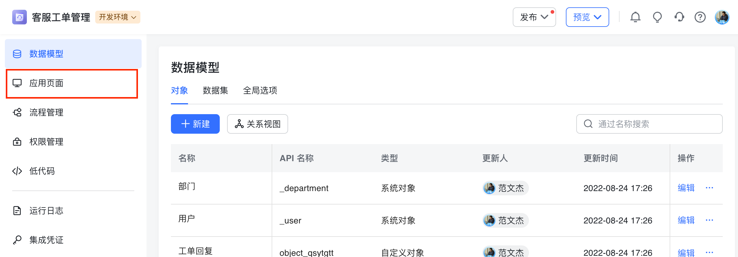 - 点击【应用页面】菜单项,进入应用页面列表页: