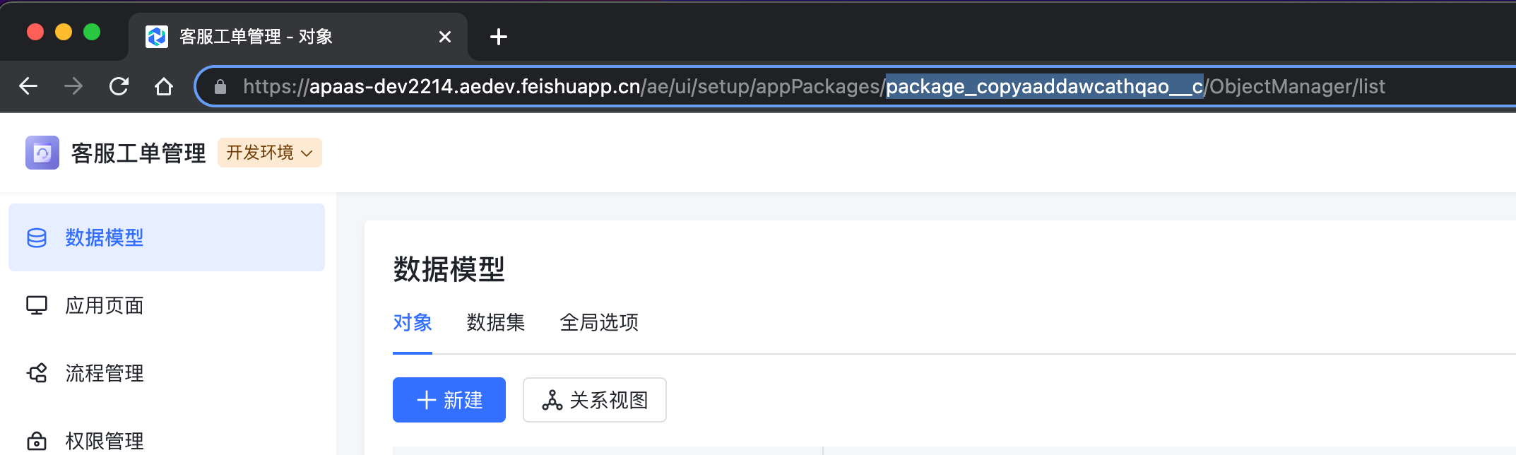 这里需要用到 namespace 参数,这个参数在应用详情页的 URL ,也可以直接获取,如下图所示: