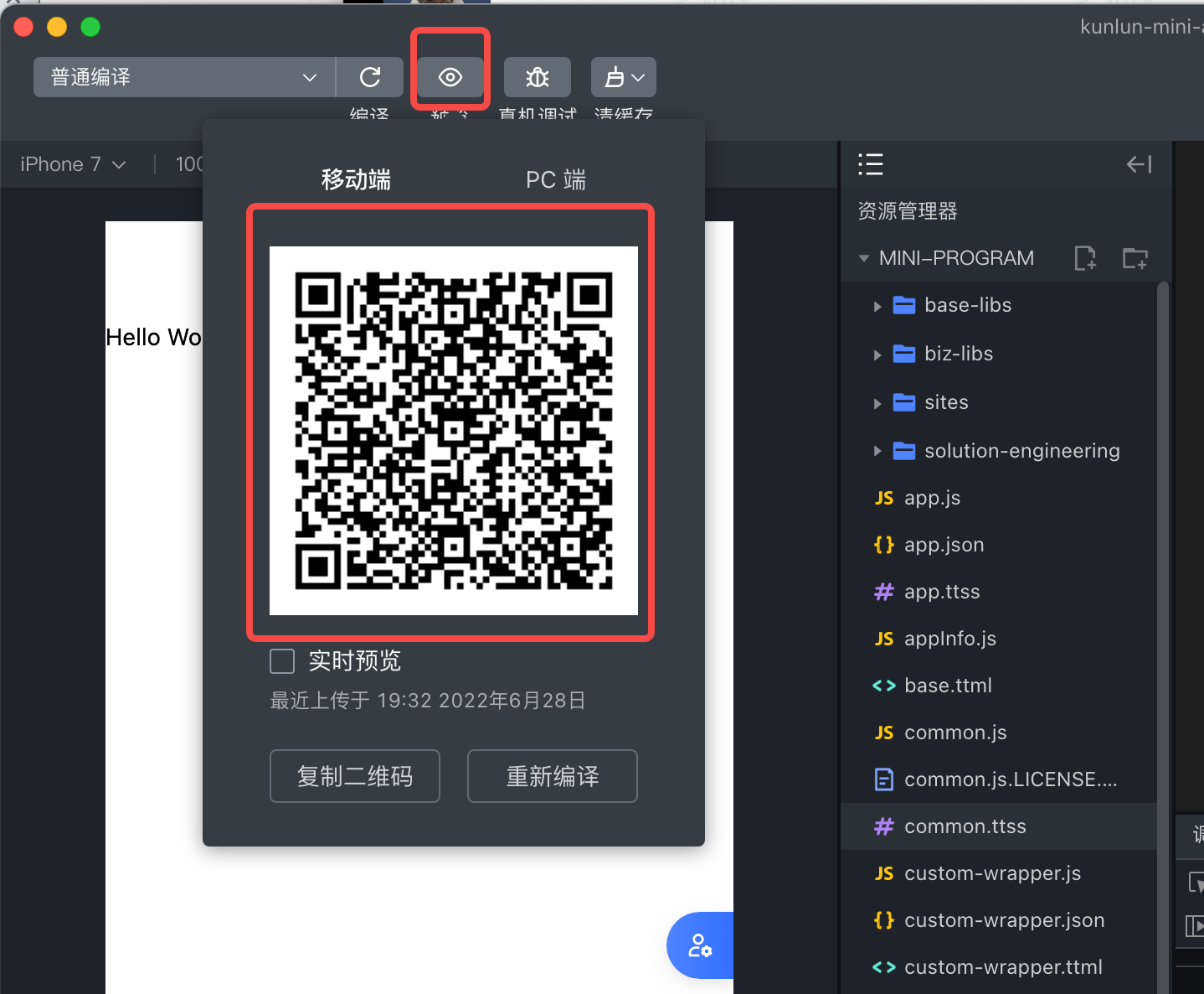 -m, --mini with dev mini-program // 移动端-小程序真机调试