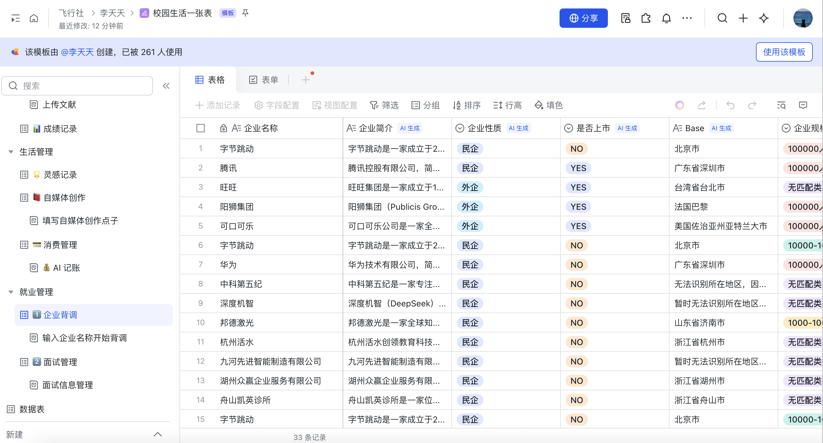 更重要的是,飞书多维表格集成了强大的AI能力和自动化流程。对于大学生而言,它就是一个零代码的个人数据库,可以把无序的校园生活连接成井井有条。