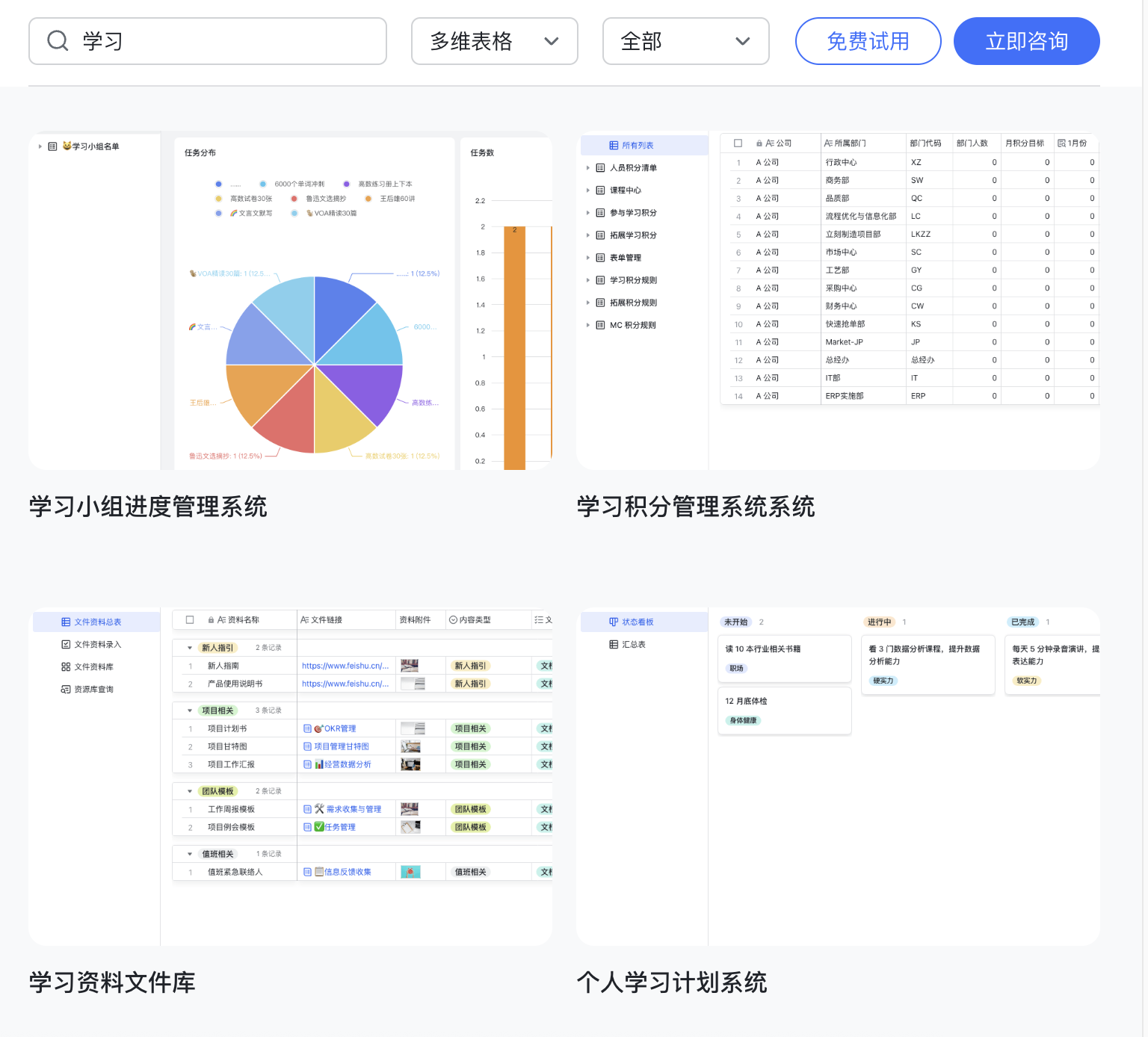1、学习日程管理:模板库点击即用