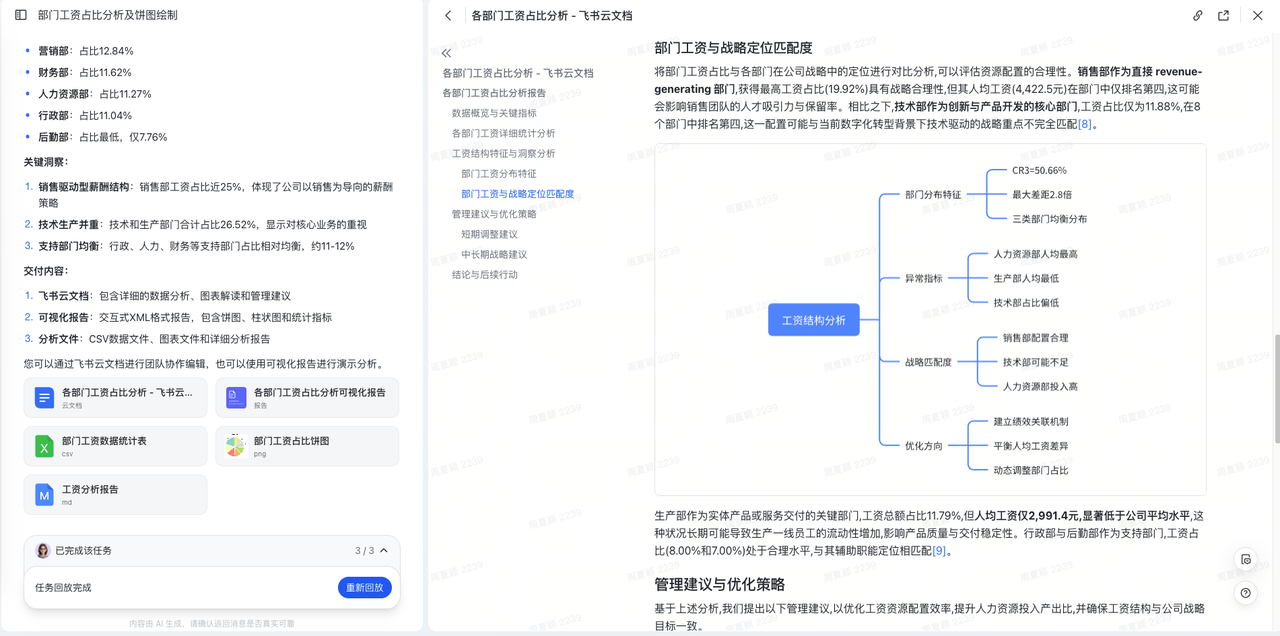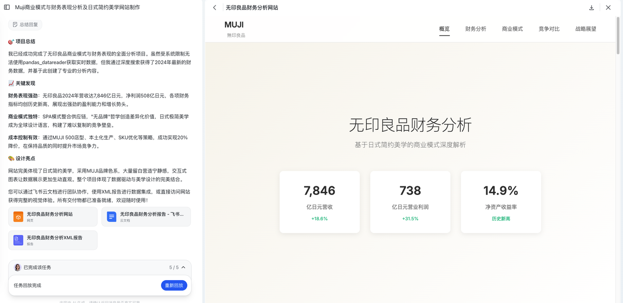 - 支持飞书云文档、报告、可视化网页等各种形式的内容生成和输出,适用于各种汇报和沟通场景