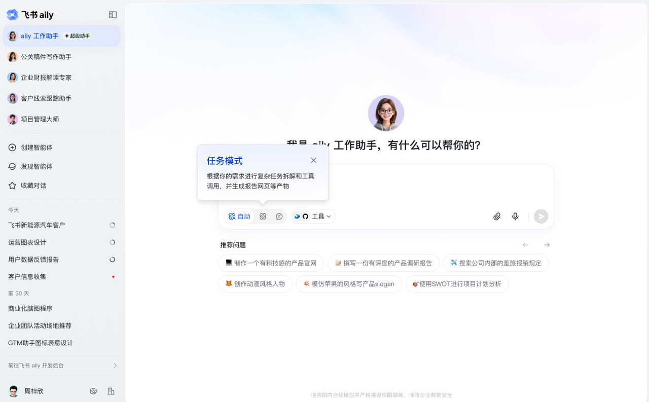 aily 工作助手全新任务模式,为智能体配备专属电脑和更多工具,支持更复杂的任务拆解,带来更丰富的交付,做你的超会工作的智能体。