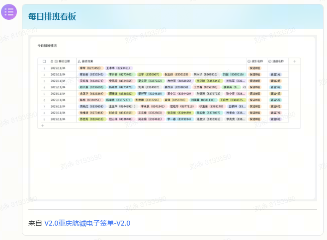 同时,新大正通过低代码平台开发电子签字功能,并接入多维表格。班组长和机长直接在线上签单,且工单图片自动存入多维表格中,避免纸质单据传递丢失风险,便于后续结算与追溯。