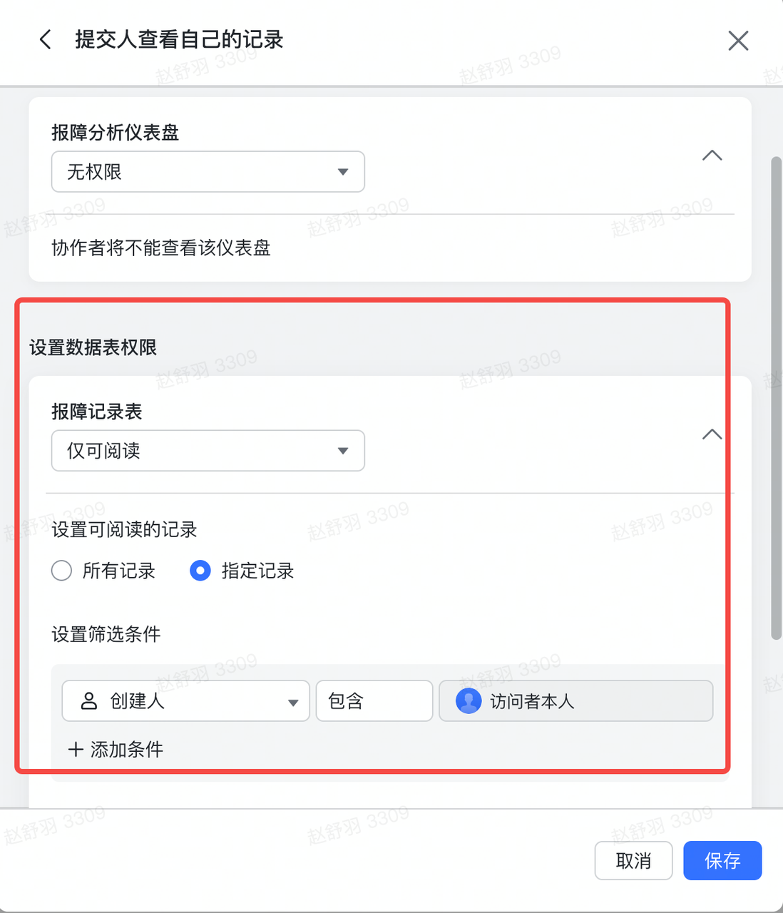 - 设置仅可阅读自己的报障记录