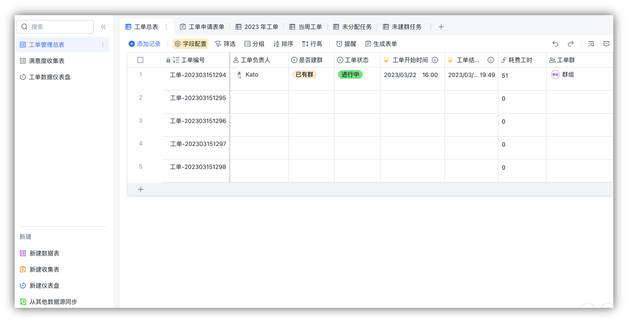 - 一键加群:直接在表格里点击群名片,即可打开或加入对应的工单群。