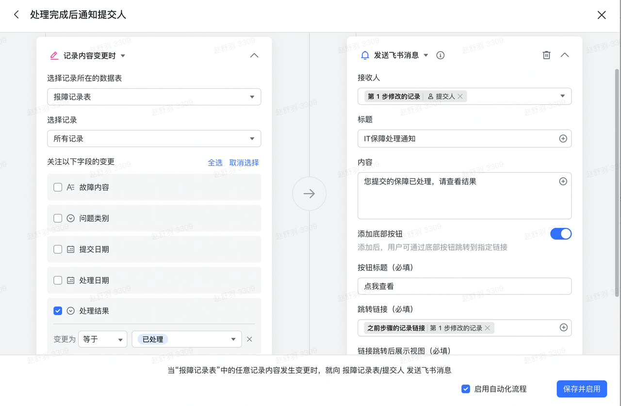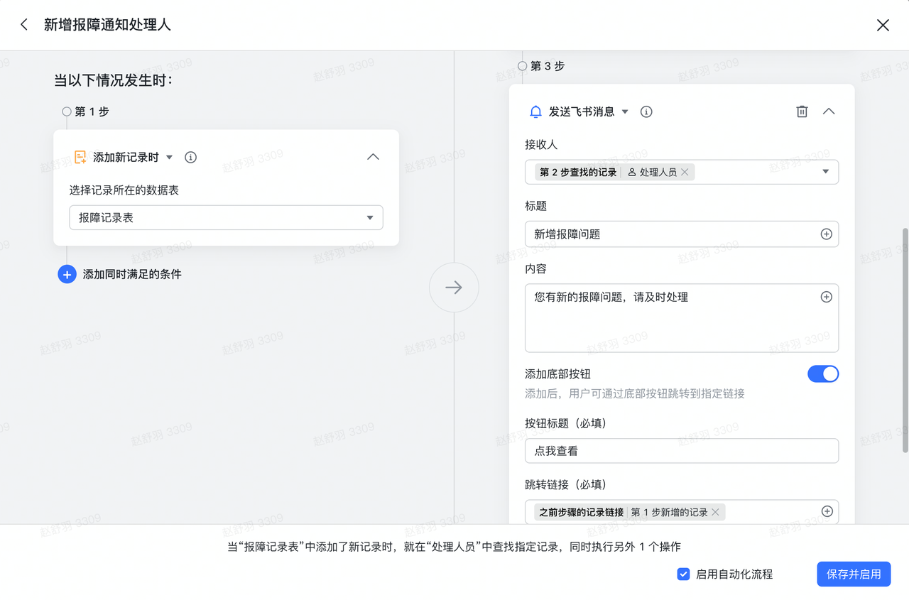 - 保存并启用自动化流程