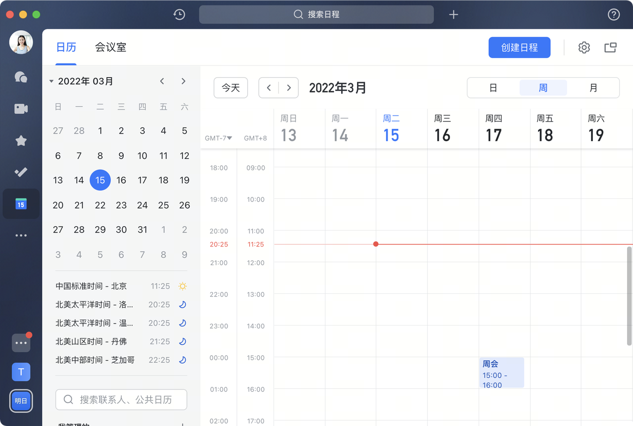 飞书日历支持显示多个时区,正是为了配合这种需求,让大家可以快速找到共同工作时段来开会。