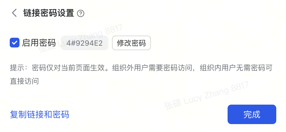 - 开启链接分享,结合密码分享,与外部伙伴也可文档协作