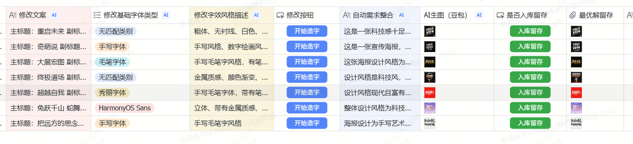 基于飞书多维表格的表格属性,AI 需求可以得到批量处理,实现结构化生产。