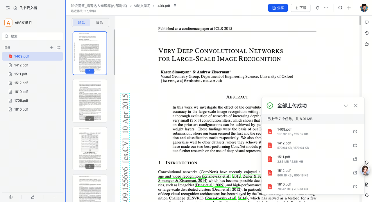 - 格式丰富:您可以上传文档、PDF、表格、多维表格等多种类型的资料。