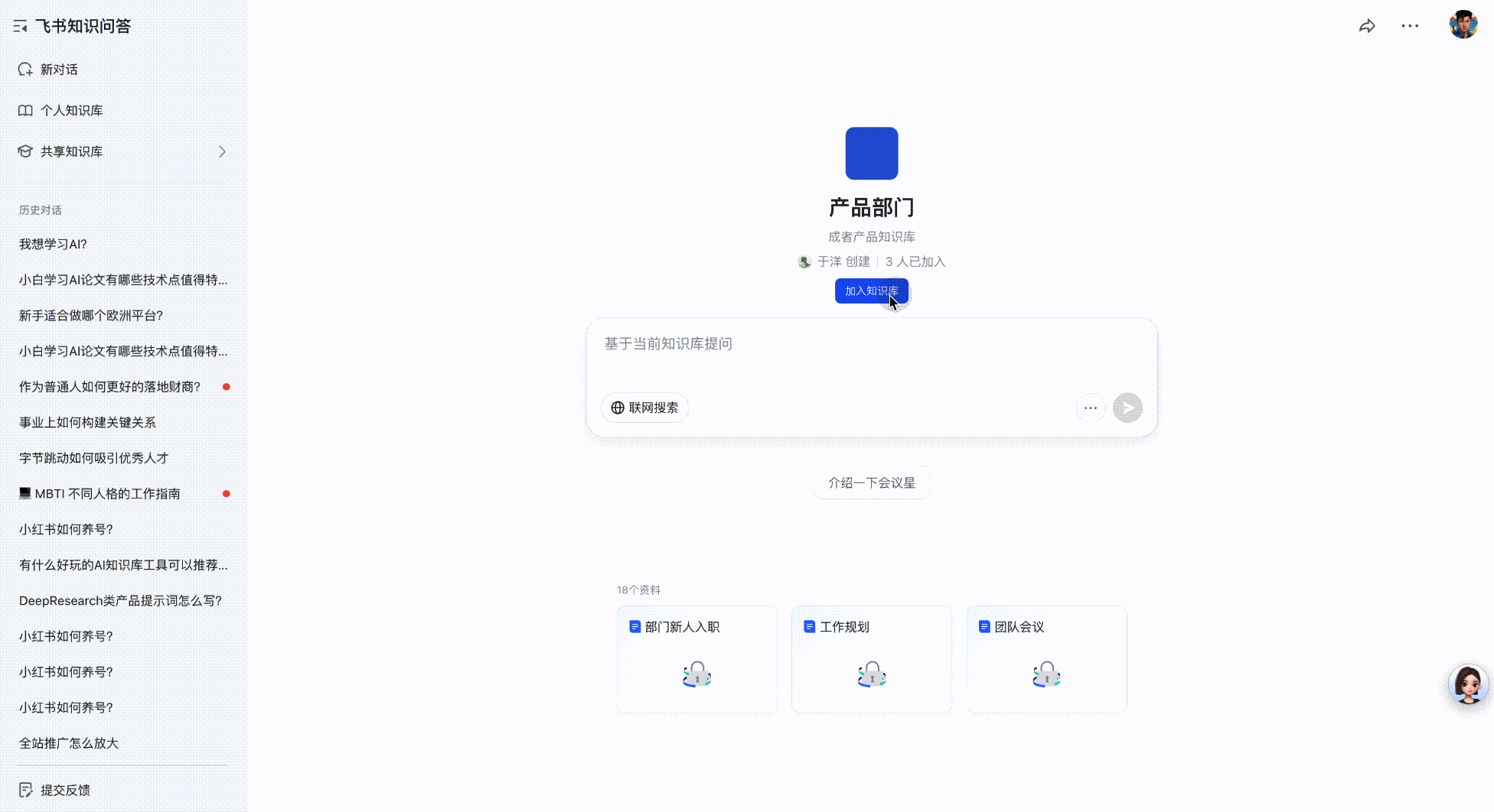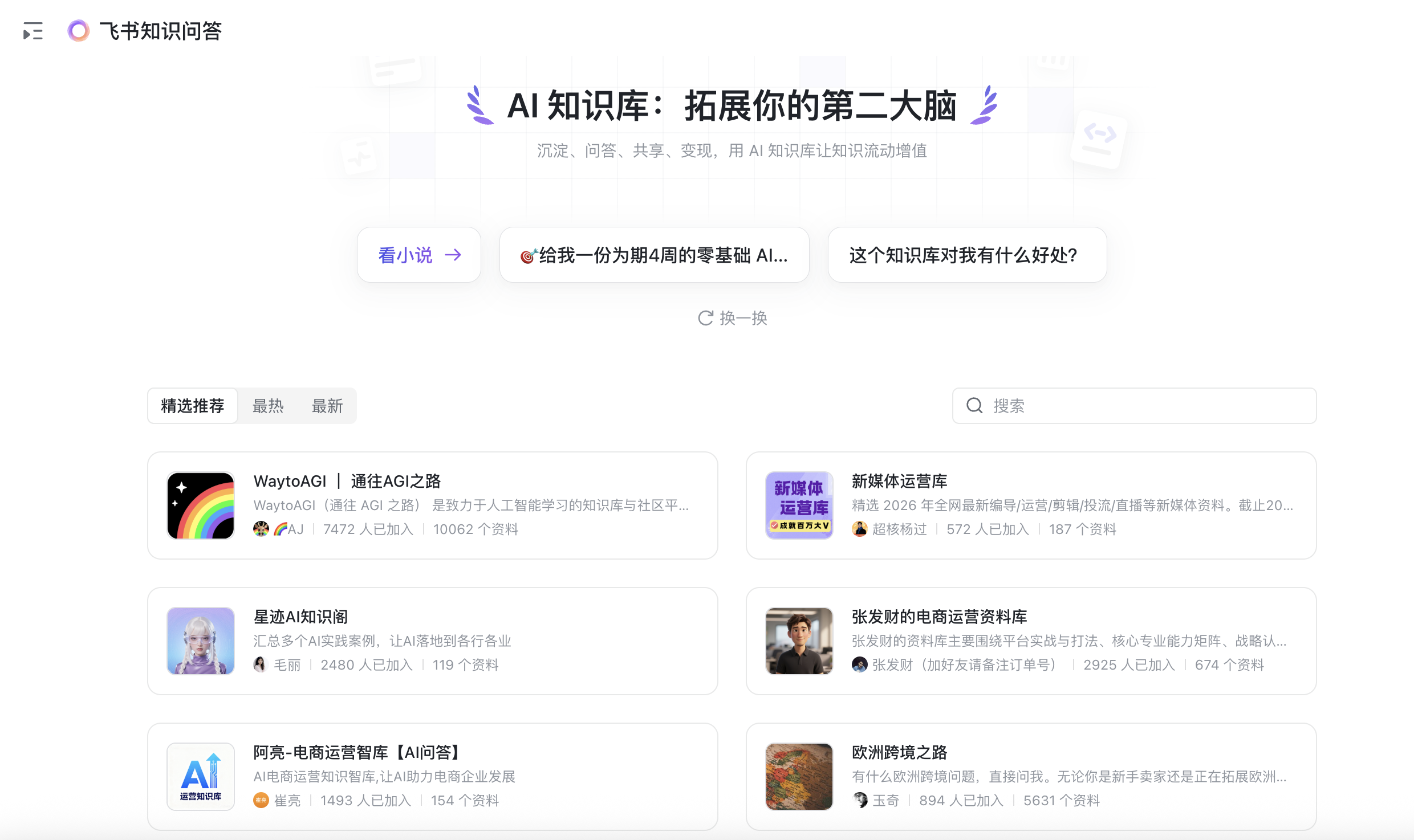 - 想要更高效地使用自己的知识资产?你可以用飞书知识库提炼出更精准、更聚焦的专属 AI 问答。