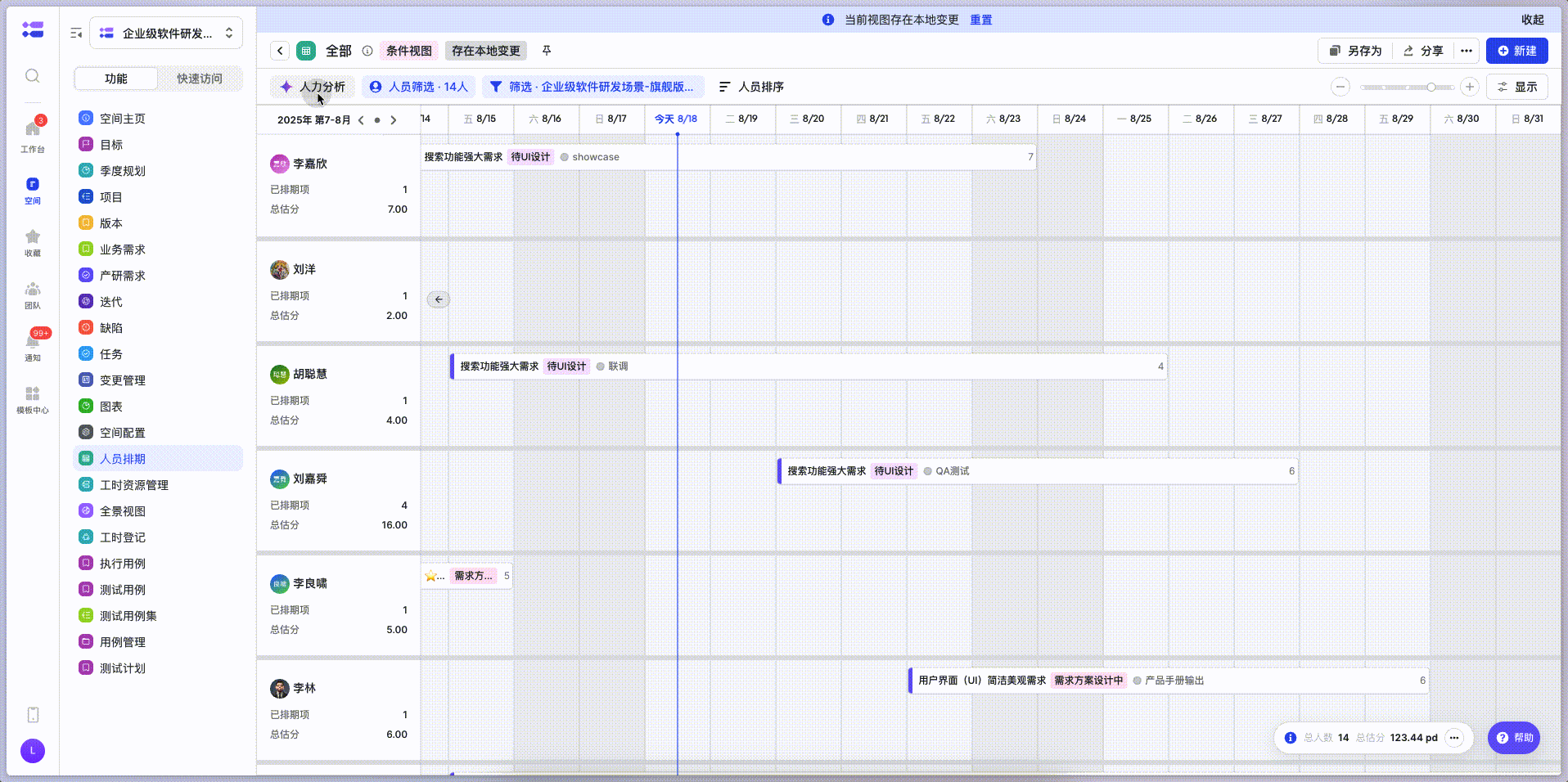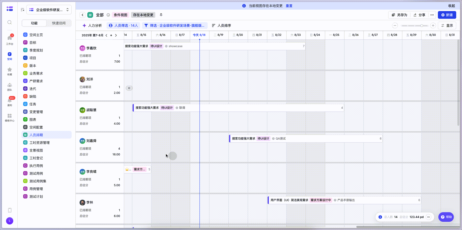 - 场景:检查团队成员的排期和估分数据,及时发现过饱和、排期冲突等潜在风险。