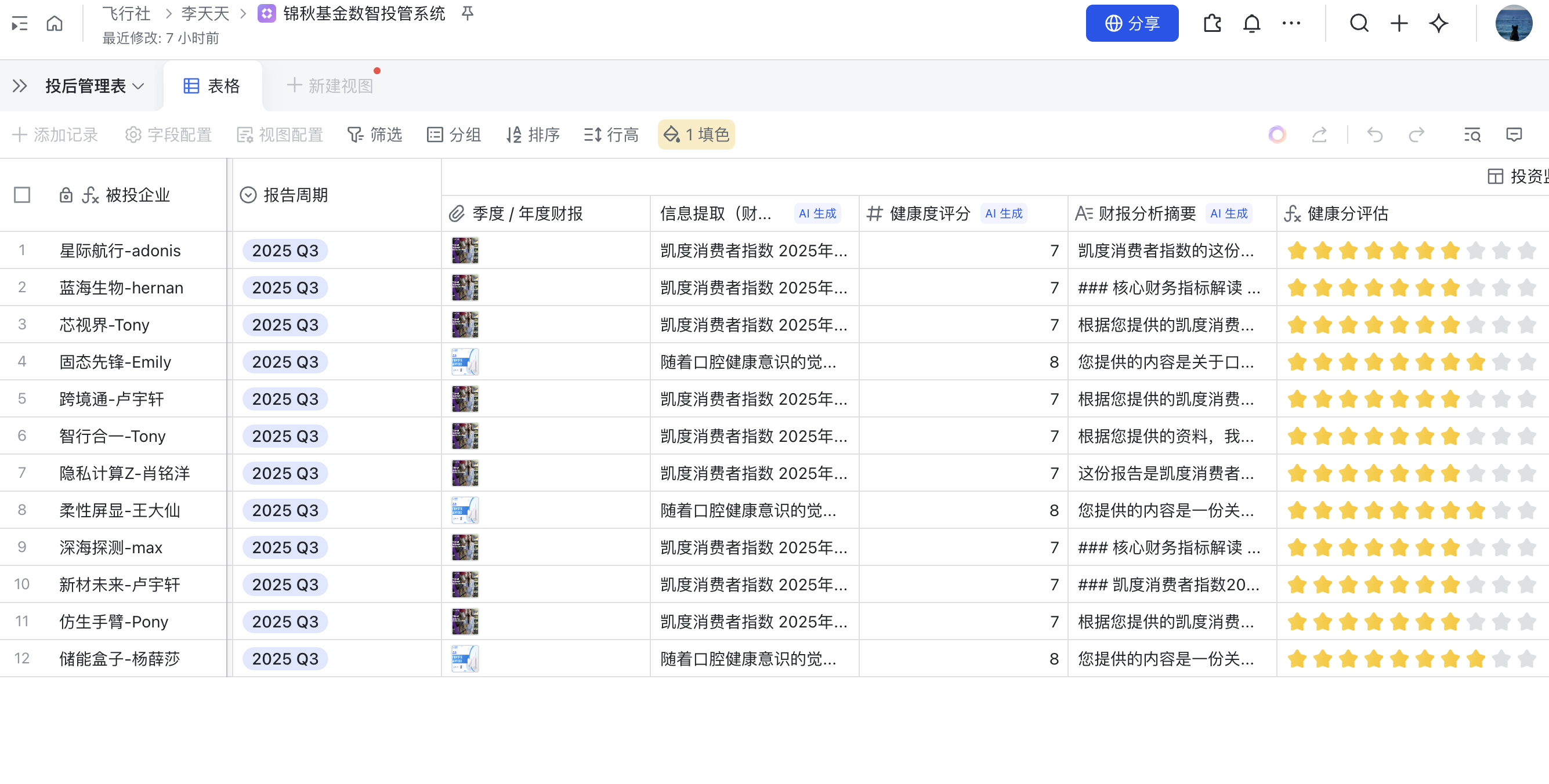 - AI字段捷径:上传财报/合同等资料,AI自动识别并填入相关信息,还能进行评分和打标,告别手工录入。
