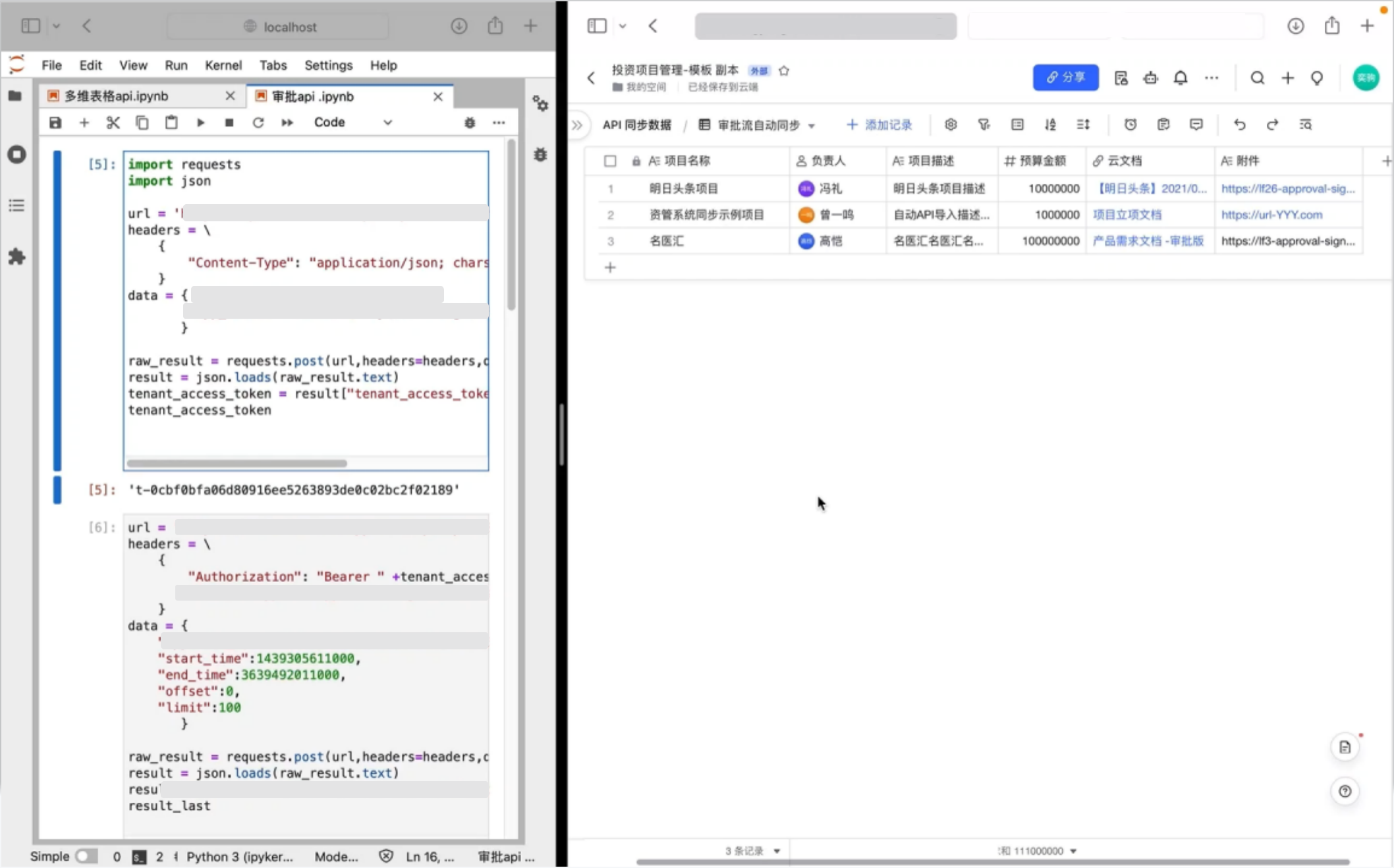 自动化同步:投后团队用飞书审批,收集投前团队的项目信息。审批流和多维表格自动同步,信息录入多维表格,解决投前和投后团队项目信息不同步问题。