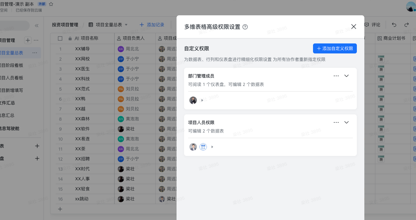 - 多维表格高级权限,成员仅可查阅自己跟进项目,保护项目的隐私性;