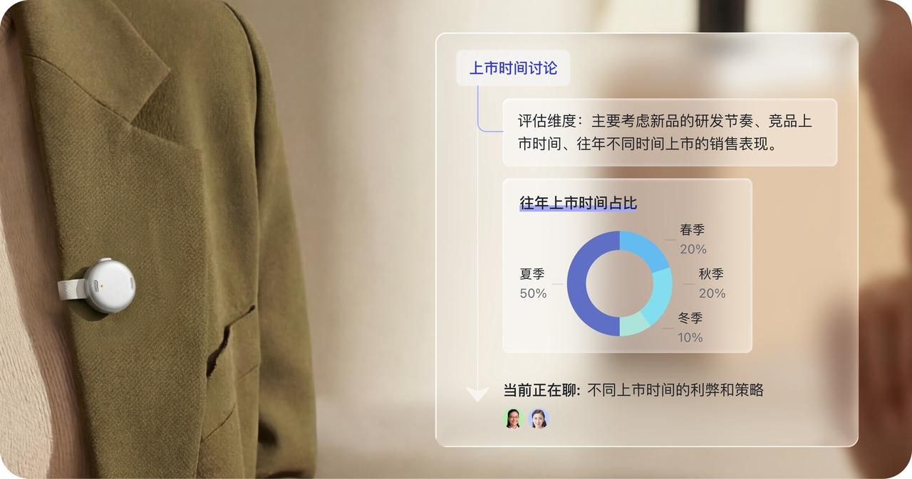 产品由安克团队负责硬件设计与制造,飞书提供完整的软件体系与 AI 录音、转写和纪要服务,从一开始就以“录音 + 理解 + 沉淀”为完整目标进行设计。