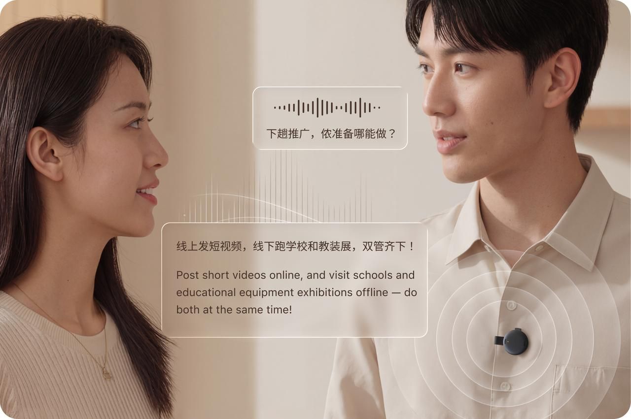 同时,佩戴式硬件更容易靠近声源,收音位置更稳定,在会议、访谈等场景下,整体录音质量也更有保障。