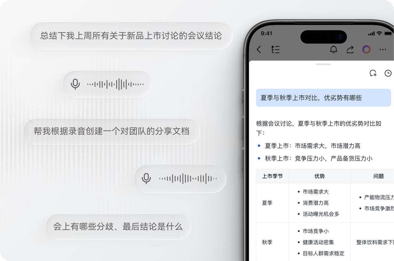 - 知识问答能力:妙记与 AI 纪要沉淀为知识库,可进行 AI 问答与企业级知识查询