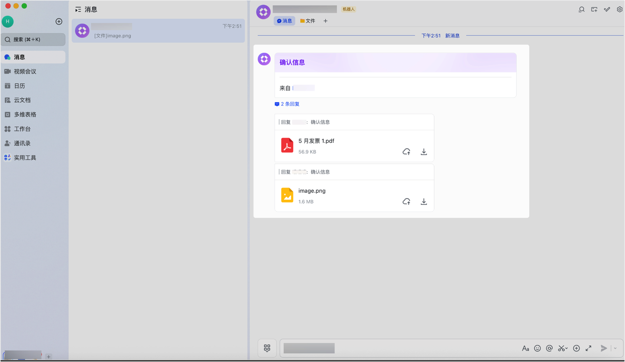 - 应用场景:当机器人在飞书群组(甚至包括外部群!)或单聊中收到符合条件的消息时,自动执行后续操作。