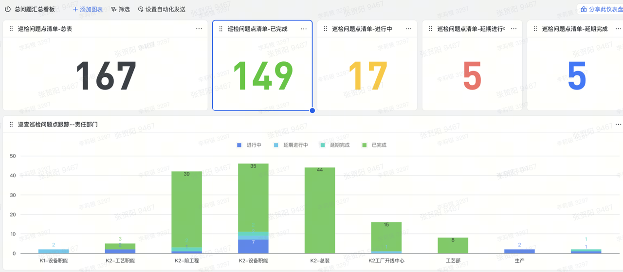 👋飞书多维表格能够通过检验流程的标准化和自动化,实现质量巡检问题改善责任到人闭环处置,带来质量巡检效率30-50%提升: