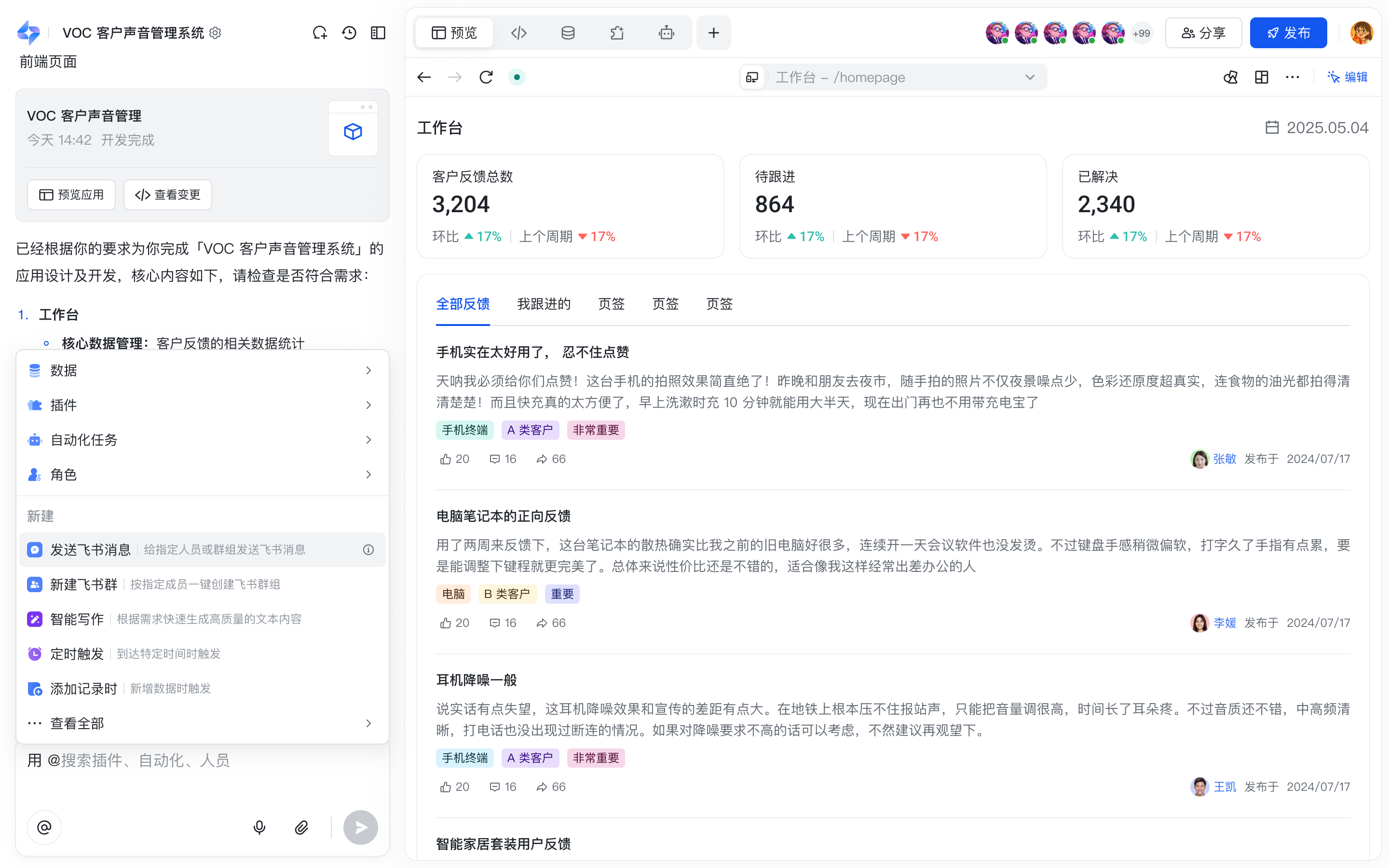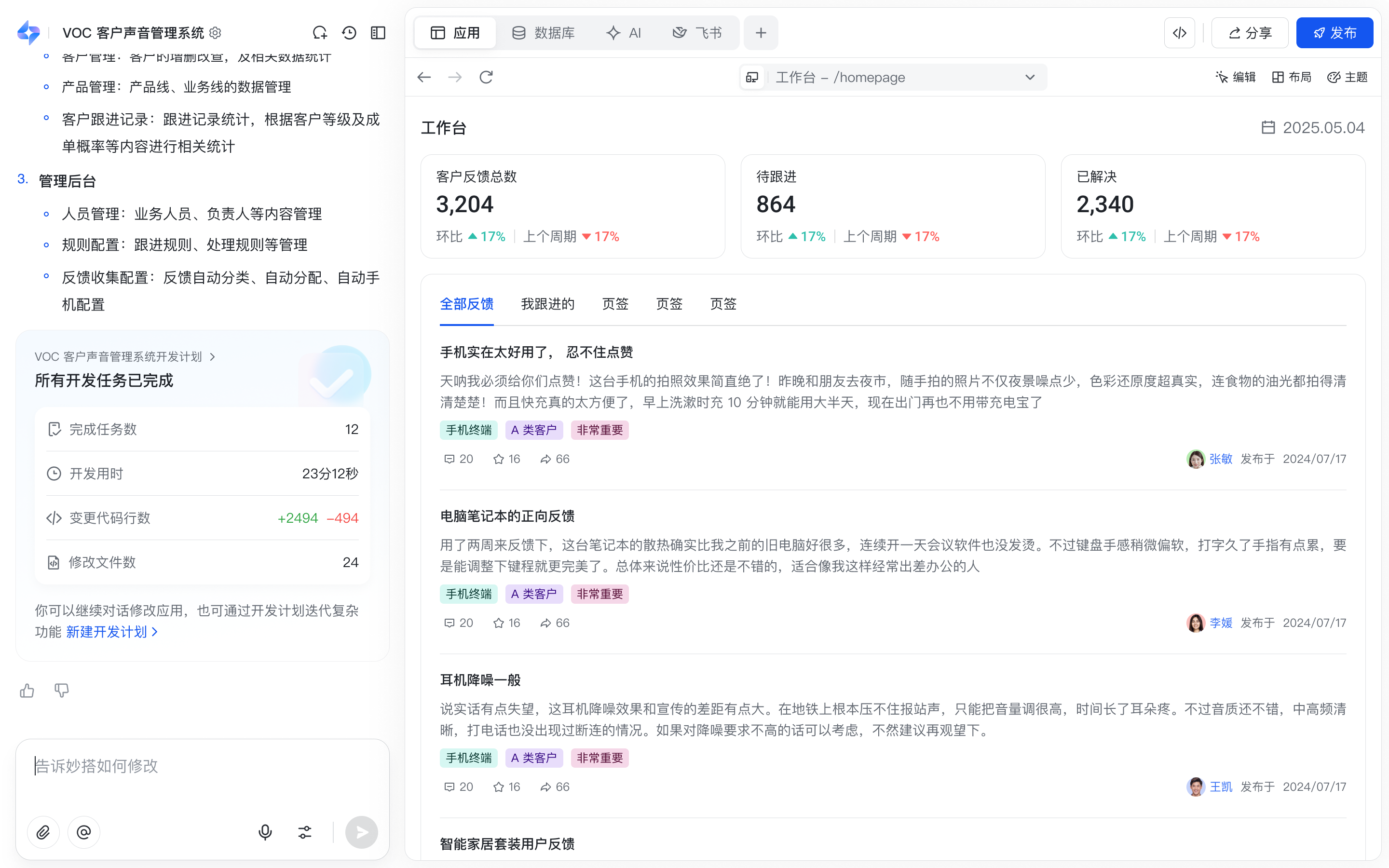 「飞书妙搭」像是为企业引入了不限量的产品经理,和初阶的开发,能直接根据业务需求、输出原型、开发系统。