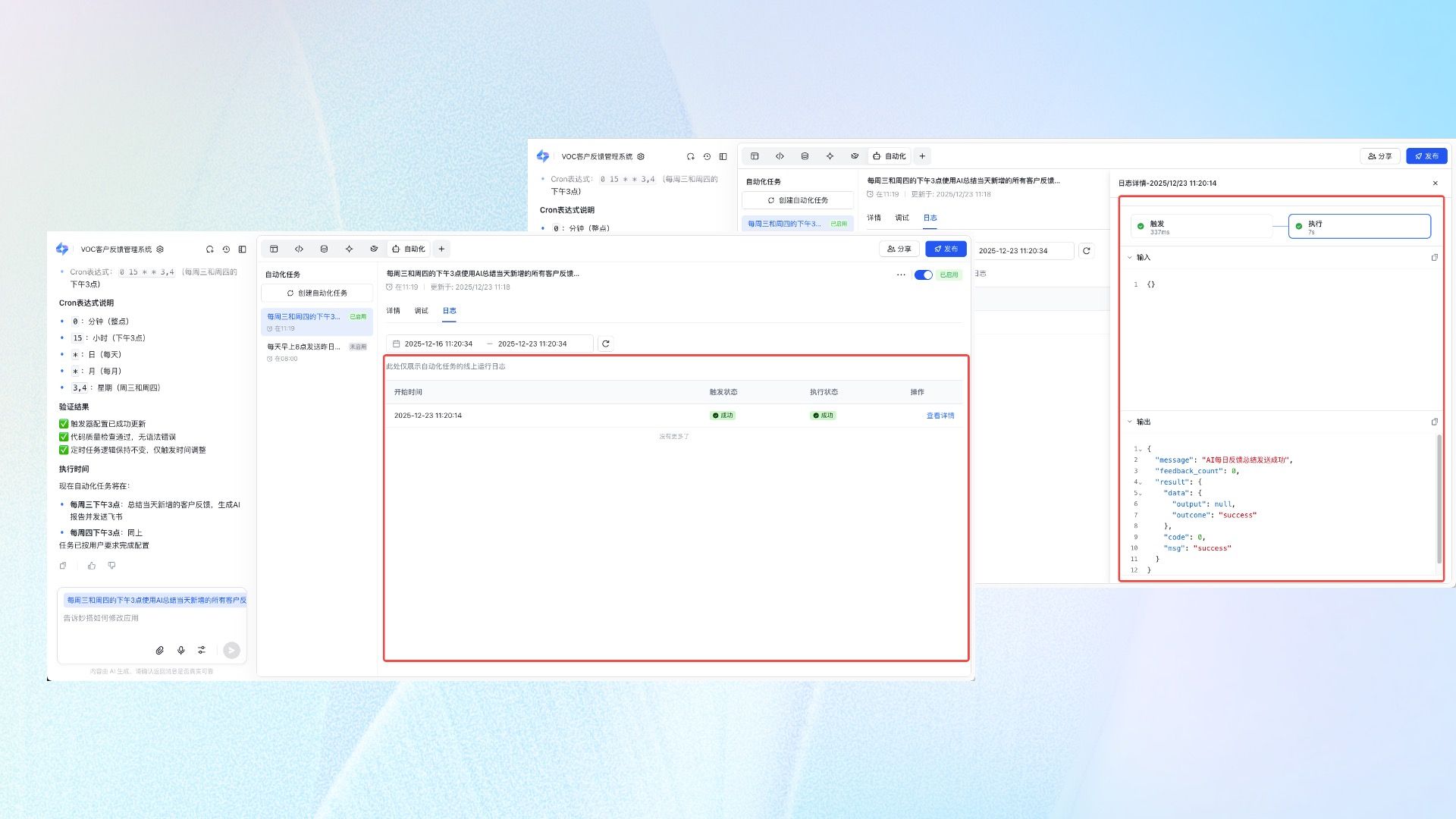 🤖 自动化任务:「自动化任务」支持开发者通过对话创建定时任务(后续会支持更多触发方式),到达指定时间时系统自动触发自动化任务,避免繁琐的人工操作。包含灵活的定时规则、强大的任务能力、易用的调试能力、观测日志保驾护航四大核心能力。