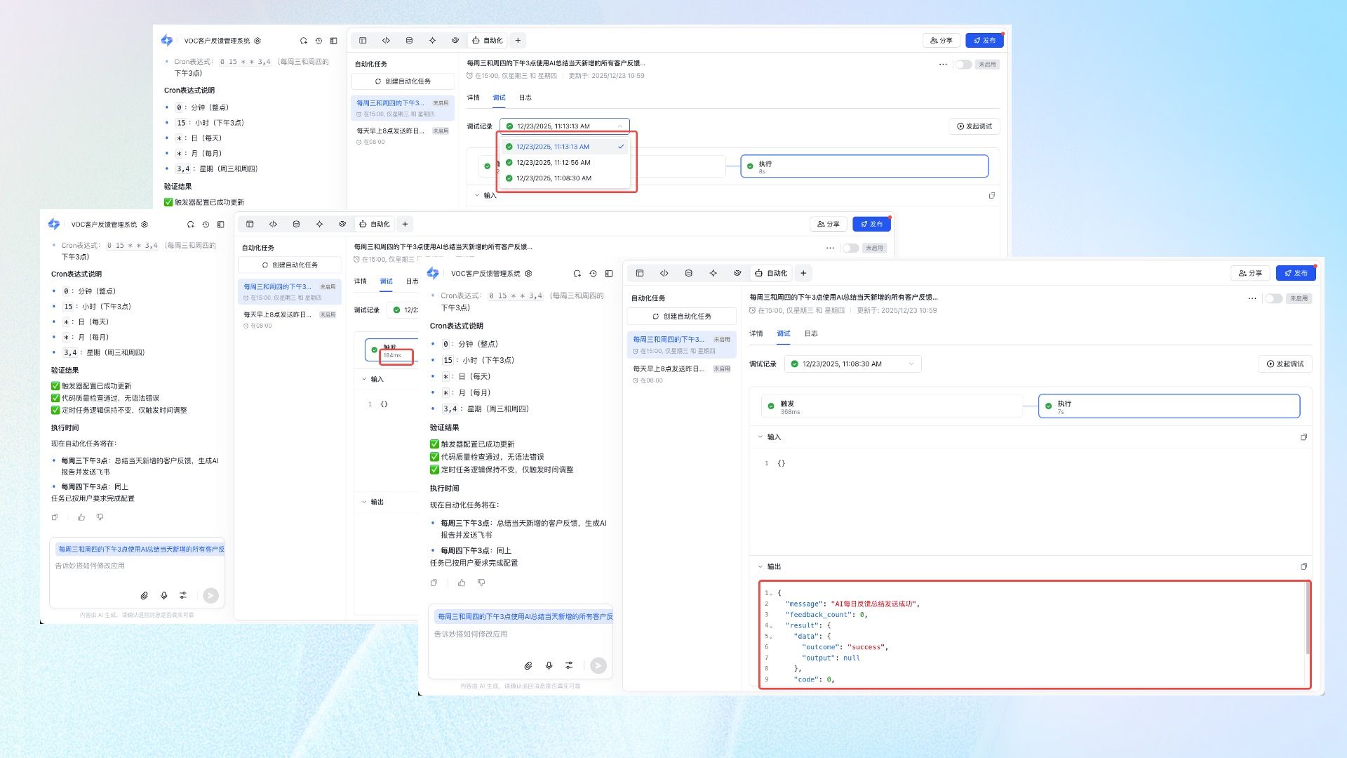 - 例子例如:每天定时定时部门日报、定时汇总商机指标发到群里、定时从外部接口抓取数据。