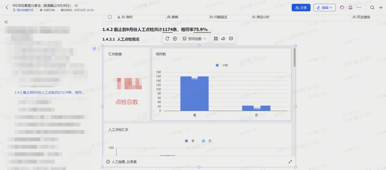 - 自动化看板:支持根据在线实时数据自动生成最新的任务点检看板并且支持看板自动化发送给相关领导、负责人,确保可以随时掌控任务完成情况