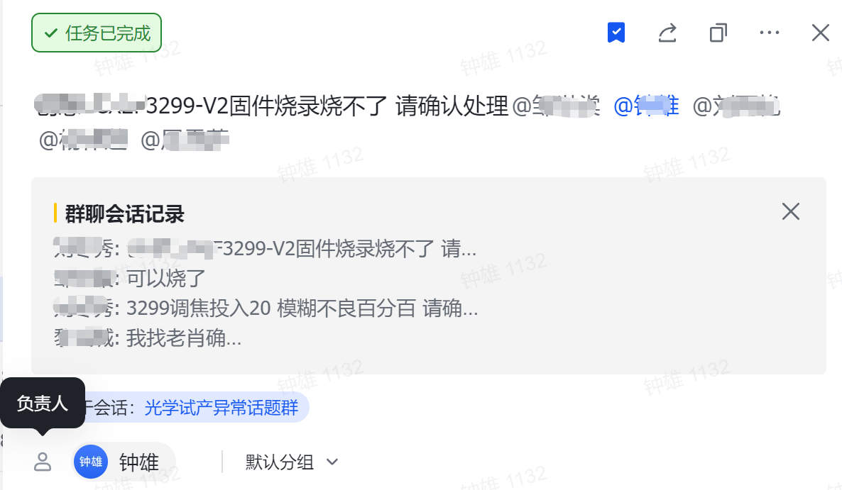 - 话题群中直接@相关人员,快速沟通确认信息,保持理解一致,异步沟通省时省力。确定解决方向@通知责任人,责任人可以快速知悉上文,减少各方确认的动作。