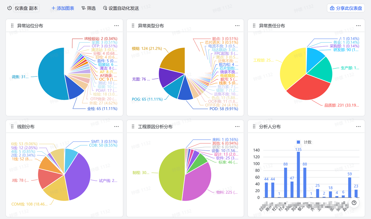 - 多维表格联动,将话题群内的异常录入到多维表格,形成仪表盘看板,将沟通的信息可视化、趋势化。
