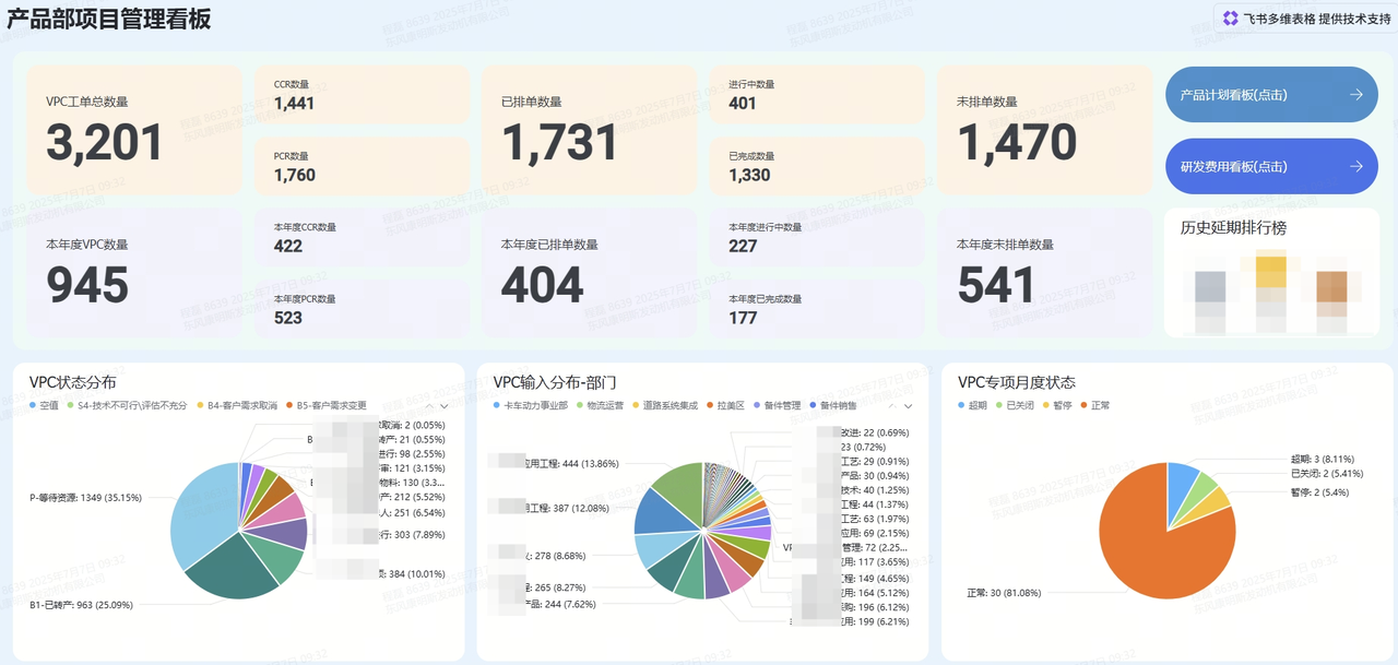看看东风康明斯是怎么做的?——以飞书多维表格为基础,搭建产品研发项目资源管理应用,支撑全量的新车型研发项目管理工作;通过多维表格数据集成能力和AI能力,进一步提升研发项目管理的效率与可视化程度。