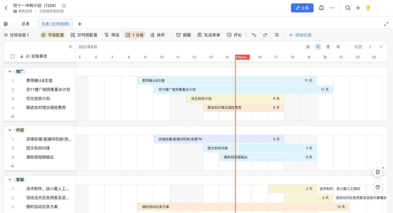 2.1 进度把控:通过关键节点快速生成进度管理甘特图