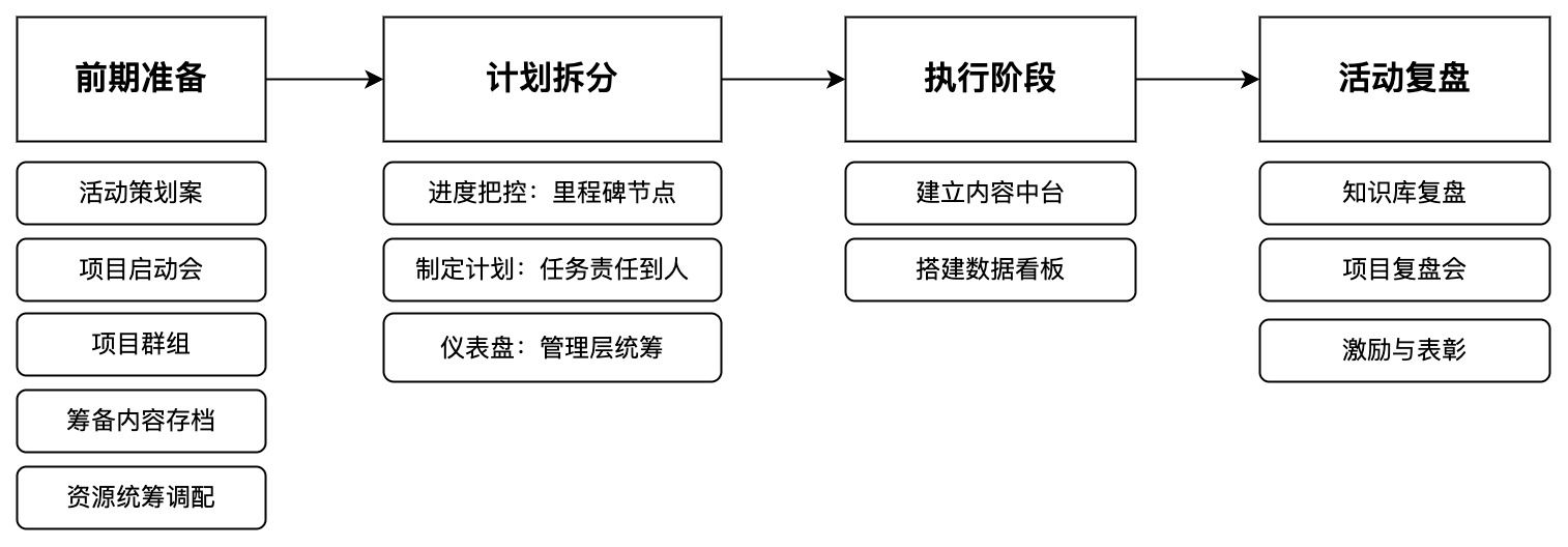 大促活动结束后,团队工作任务还在继续,往往需要对活动数据和结果进行回顾。当我们在项目前期创建好了项目知识库,并在计划和执行的过程中不断填充,这便成为我们后续复盘的现成利器。
