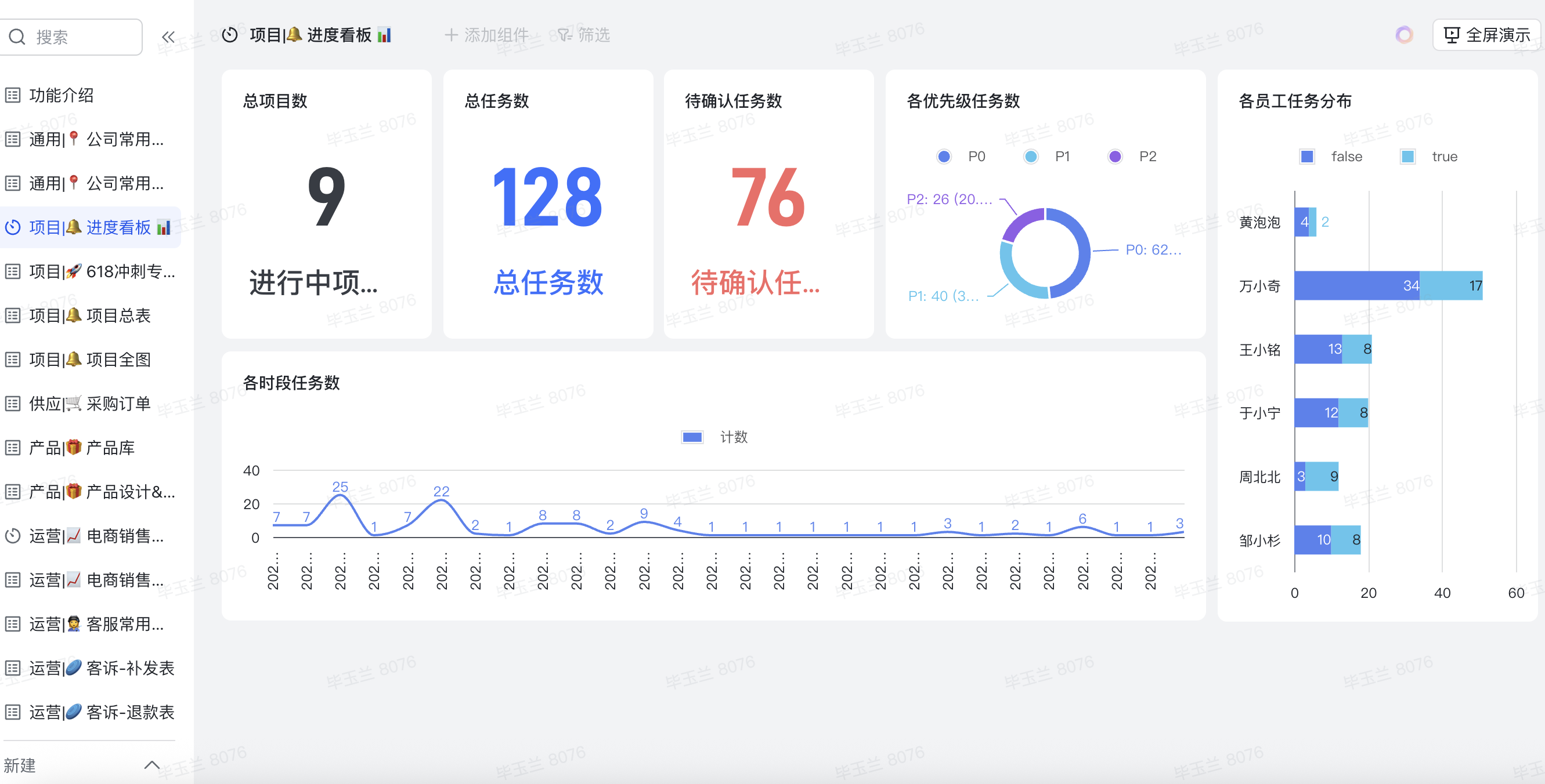 大促活动中五花八门的任务和错综复杂的细节,难以快速向领导汇报,管理层需要一种更加可视化的方式一眼掌控当前项目进度,以及项目所处状态。