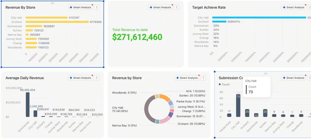 - 在飞书千人千面的定制工作台中,即可查看自己所需看到的BI报表,实时感知数据走势。