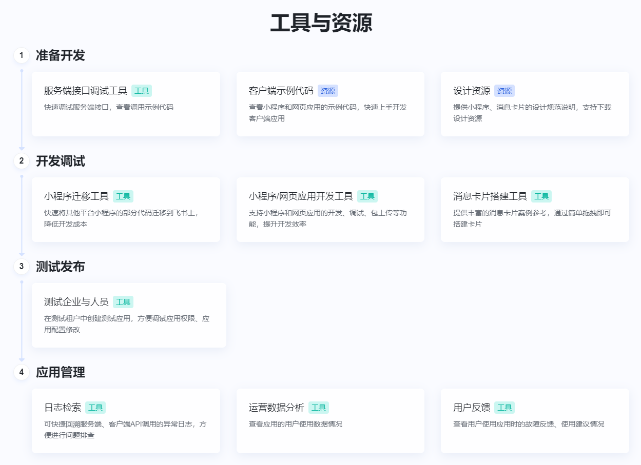 简要描述:飞书开放平台具备丰富灵活的开放能力,流畅便捷的开发体验,帮助企业系统与飞书深度融合;提供多样的集成方案,满足业务所需;携手优质的合作伙伴,共建飞书生态。
