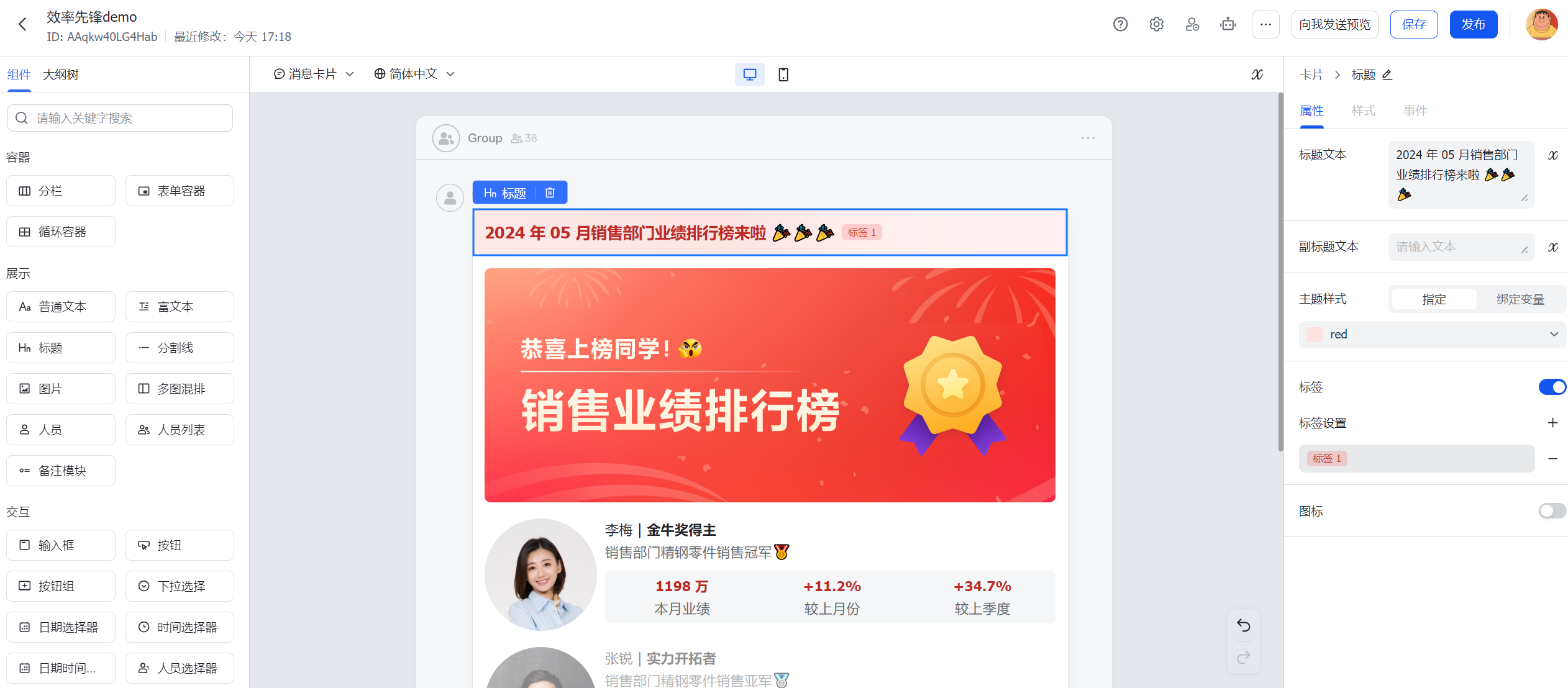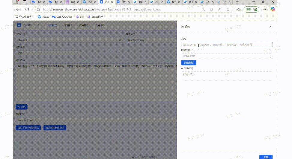 现在,通过飞书 aPaaS 的「AI 消息群发助手」,业务人员可以轻松地在几分钟内创建智能化的群发任务,结合AI进行润色与消息卡片创作,可以节省大量研发资源,让消息传递变得更高效、更智能。