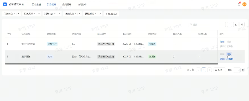 - 实时跟踪与撤回:掌握消息的发送进度,支持查看消息的发送人数、已读人数,同时对发送的消息支持撤回,确保信息传递无误。