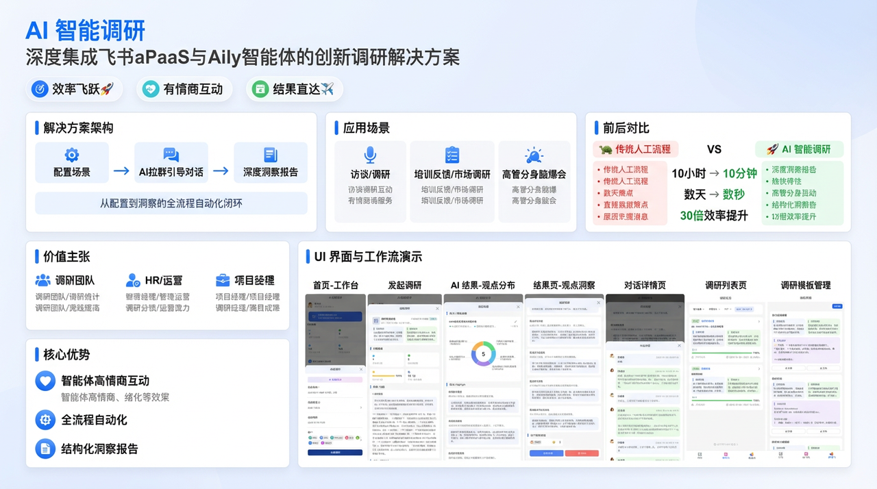 ✨一表看懂飞书「AI智能调研」解决方案价值亮点: