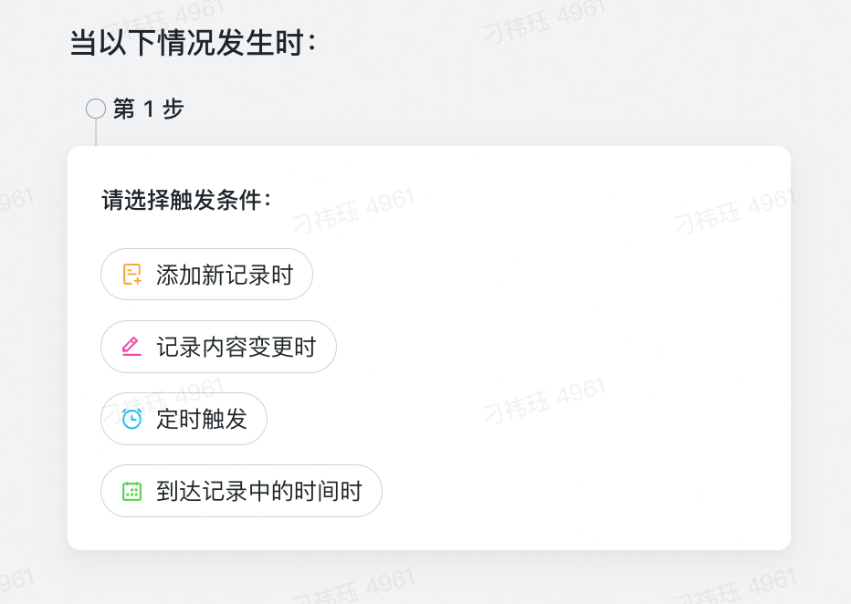 - 飞书支持创建 AI 驱动的自动化规则,用户可灵活定义触发条件和执行操作。触发条件包括添加新记录时、记录内容变更时、定时触发、到达记录中的时间时等;执行操作包括发送飞书消息、新增记录、修改记录、查找记录、发送 HTTP 请求等。