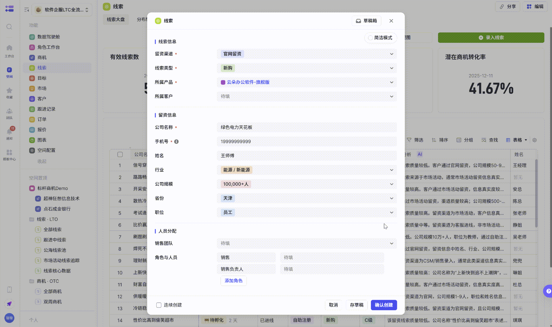 - 飞书自动化流程可实现任务分配、状态更新等自动流转。例如,在“线索转商机”“商机建客户”“自动创建报价”“自动生成订单”等核心环节,通过自动化规则实现字段信息无缝同步。客户名称、行业、规模、对接销售等基础信息,以及商机阶段补充的预算、账号等数据,均自动流转至后续模块,无需人工重复录入