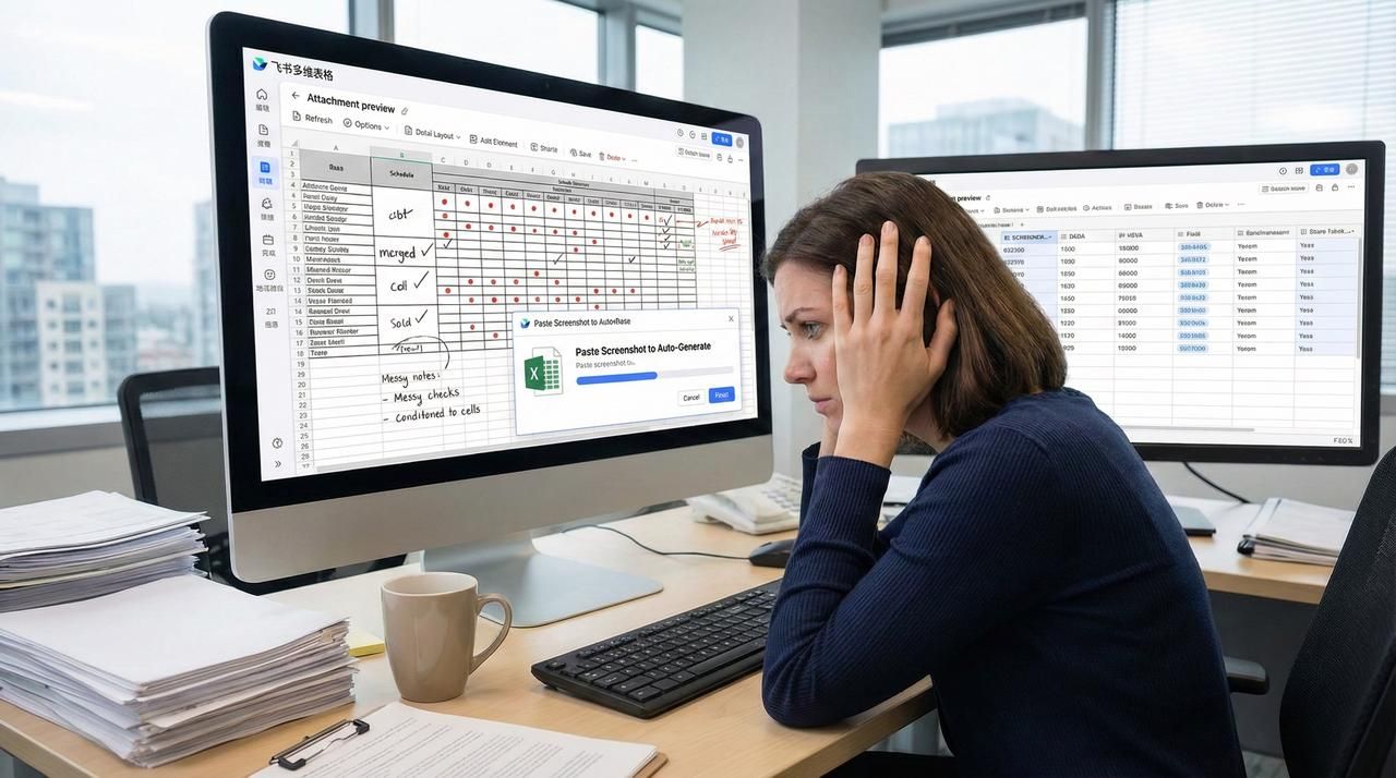行政收到一张复杂的排班表截图,里面全是合并单元格,还有红点、对钩这些符号,想统计简直头大。这时候,直接把截图粘贴进去,表格瞬间自动生成,格式完美还原。