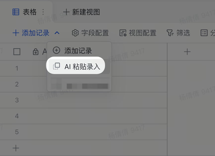 - 在添加记录处点击“AI粘贴录入”