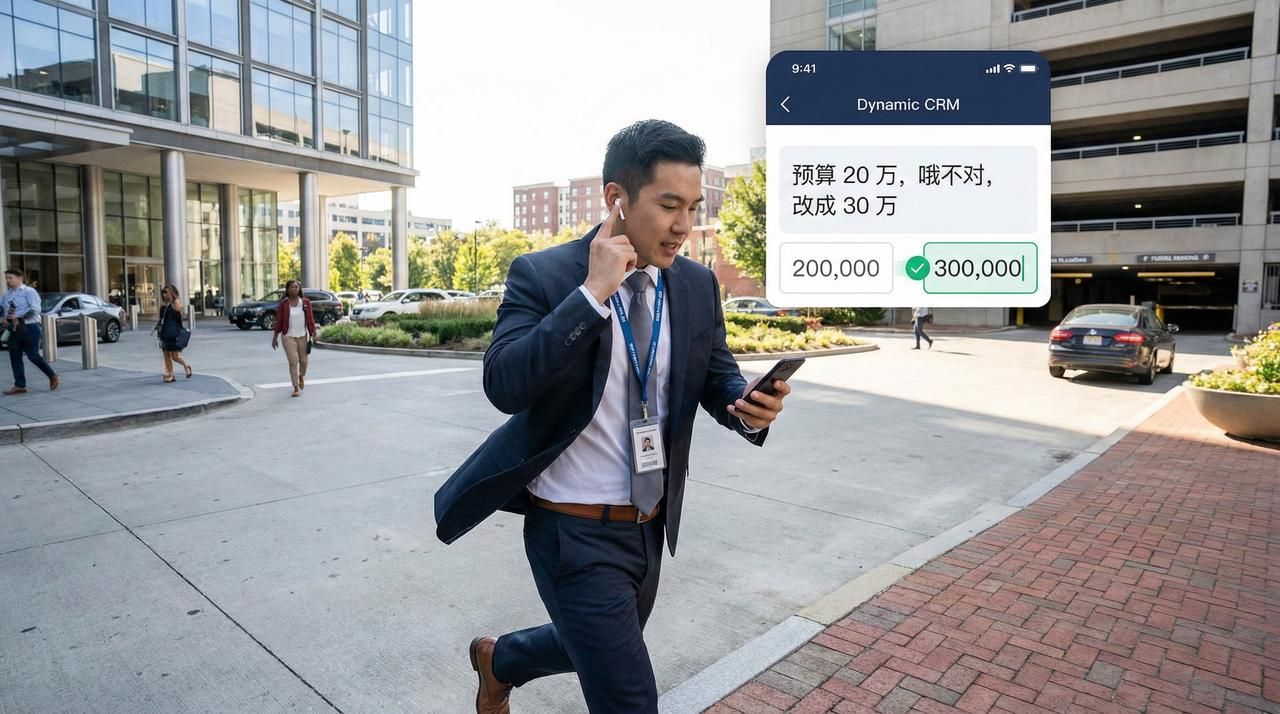 刚拜访完客户,走在去停车场的路上,根本没空停下来打字。这时候,只需要边走边说 “预算 20 万,哦不对,改成 30 万”,CRM 系统不仅能听懂,还能直接把数改对。