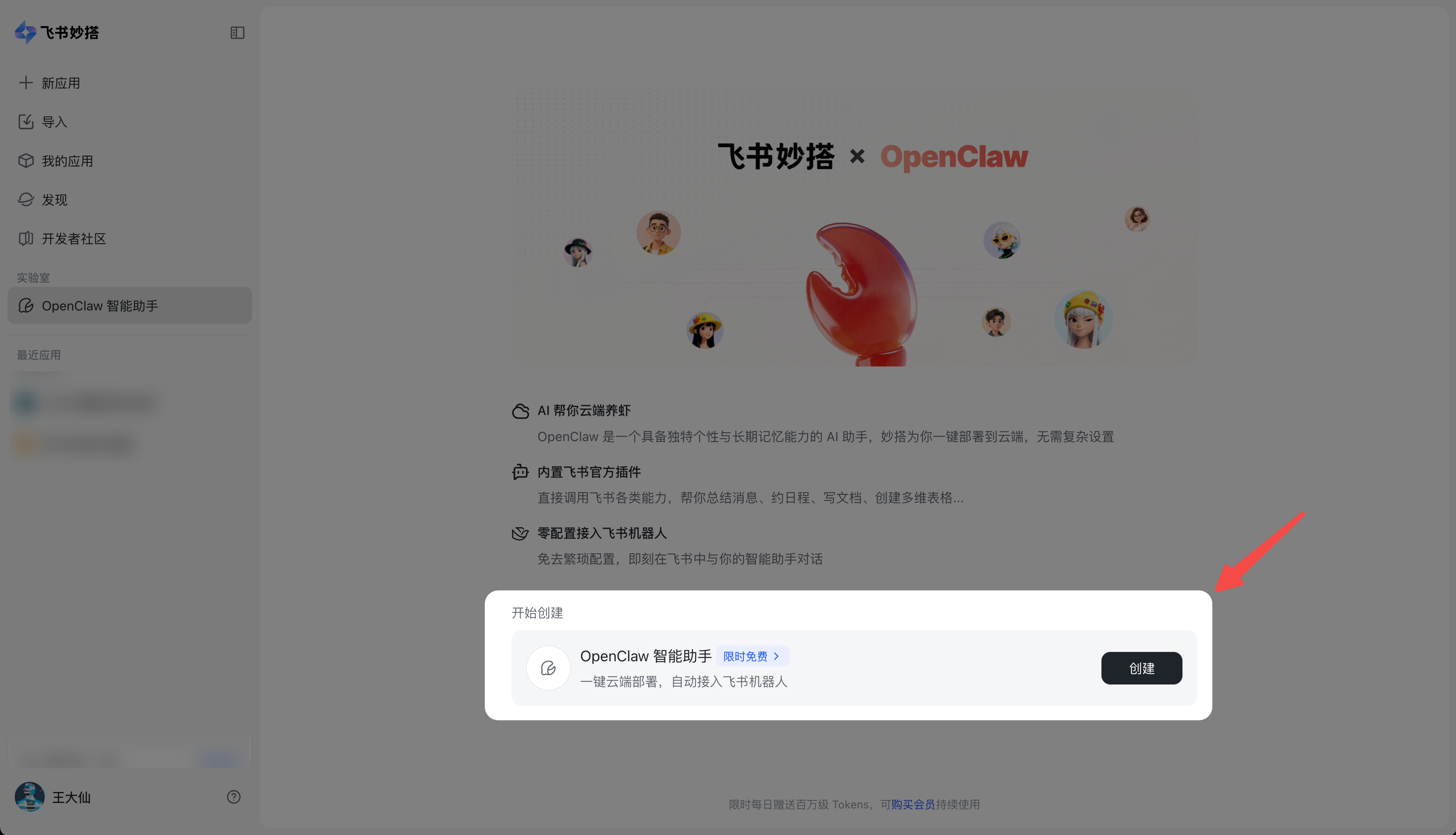 飞书OpenClaw 当前可关注的权益