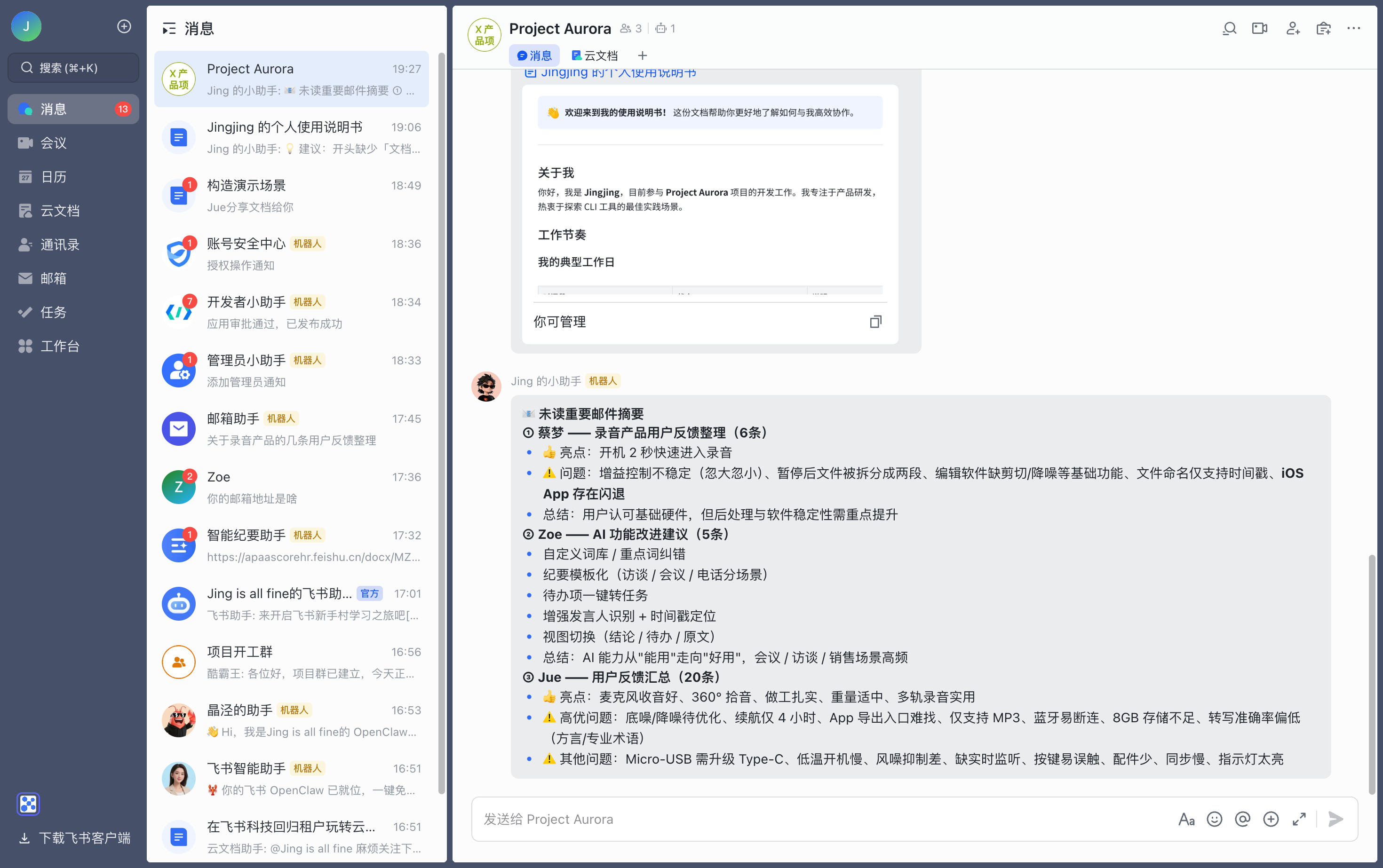 - 读取你的飞书消息和群聊记录