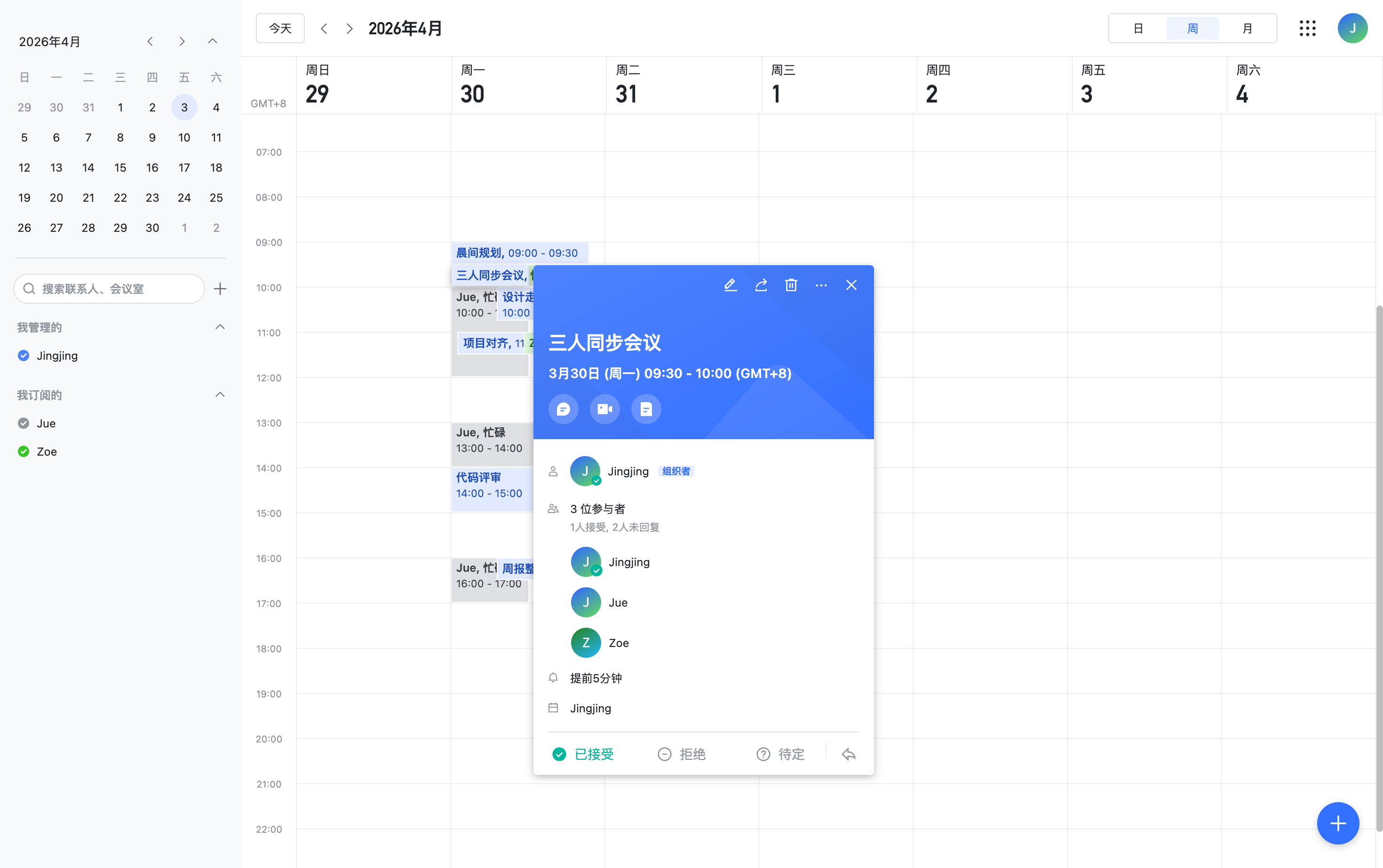 日历 | 查询日程、创建会议、查询忙闲、推荐时间 |