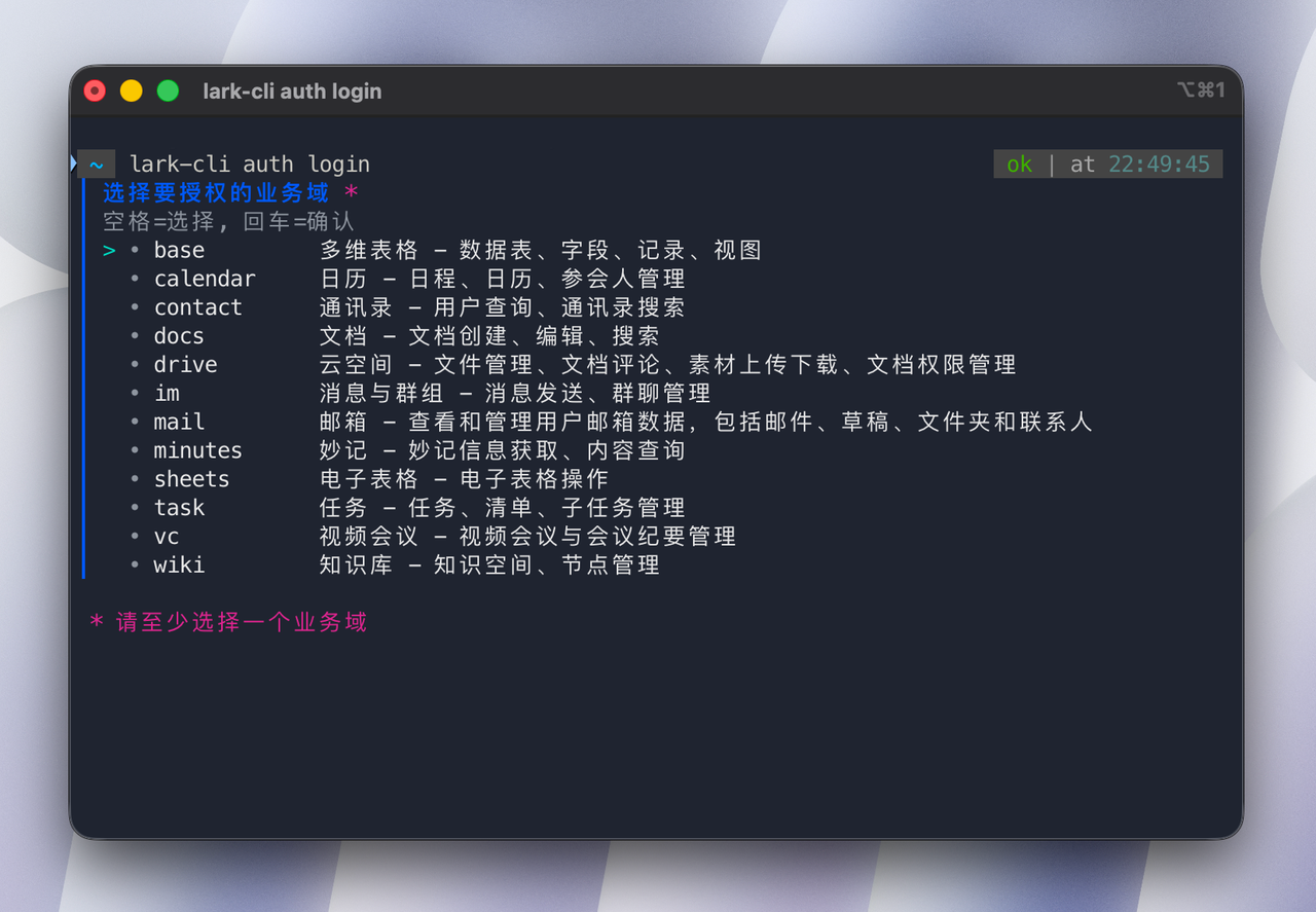 lark-cli auth login